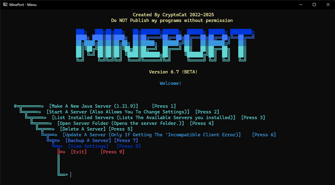 MinePort is an all-in-one, beginner-friendly, and feature-rich program that simplifies the entire Minecraft server creation and management process. From installing and customizing to backing up and updating, MinePort does it all—without the need for technical expertise, confusing port settings, or long setup times. It brings professional-level server control into the hands of any player with just a few clicks.